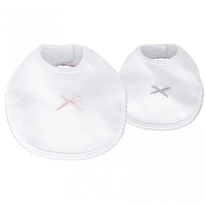 Babero bebe Calmaro C74017 Pack de 2Modelo redondo con puntilla diente de rata y detalle de lazo de raso en el centro.Fabricados con materiales suaves y duraderos.Presentacion: Bolsa de 2 unidades de la marcaColor: Celeste y rosaTallas: ÚnicaComposición: 100% algodón