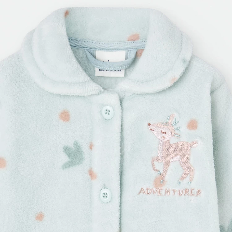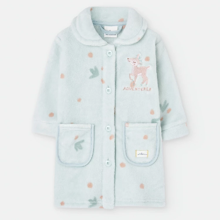 Bata bebe Waterlemon 7214Modelo estampado completo, abotonado, bordado en el pecho y bolsillos en los laterales.Presentación: Caja individualColor: ÚnicoTallas: 6, 9, 12, 18, 24 y 36 (meses)Composición: