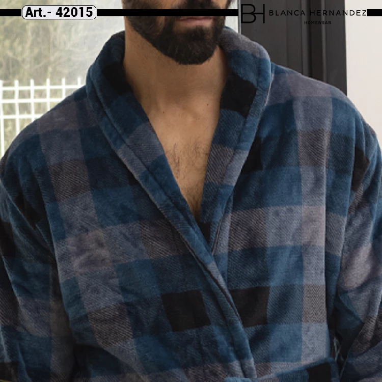 Bata hombre BH 42015 Ulises coralinaBata larga por encima de las rodillas, manga larga, nudo y estampado completoPresentación: caja individual de la marca con ventana.Color: Única Tallas: M, L, XL y XXLComposición: 100% poliéster