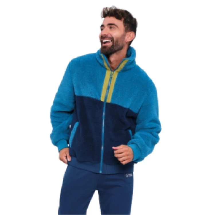Bata Hombre Muydemi 391029 BorreguilloModelo corto con mezcla de colores azules, con cuello alto, cremallera y bolsillos laterales.Manga con puño.Presentación: pack individualColor: ÚnicoTallas: S, M, L, XL, 2XL, 3XLComposición: Hecho de borreguillo 100% poliéster.