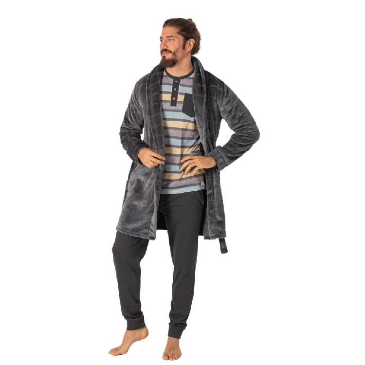 Bata hombre Waterlemon 7811 Larga CoralinaModelo largo por la rodilla y anudado a la cintura.Presentación: Caja individualColor: ÚnicoTallas: S, M, L, XL y XXLComposición: 100% poliéster