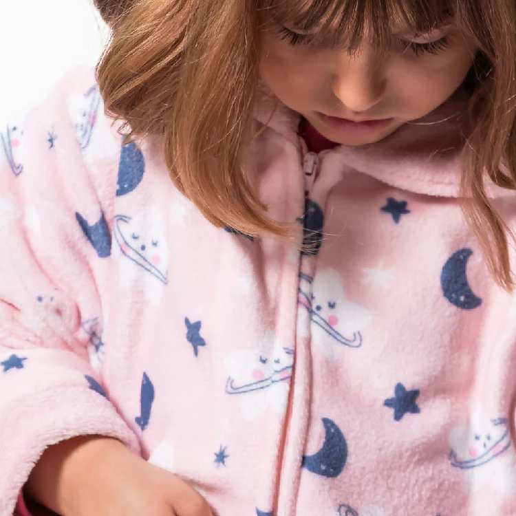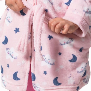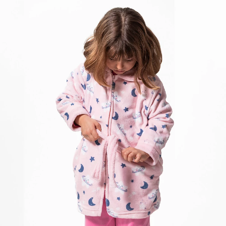 Bata infantil niña KinaNit 8064Modelo anudado a la cintura, con botones, estampado completo y cuello tapeta.Bolsillos en los lateralesPresentación: Caja individualColor: ÚnicoTallas: 2, 3, 4, 5 y 6Composición: