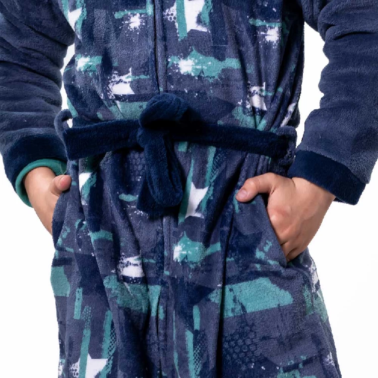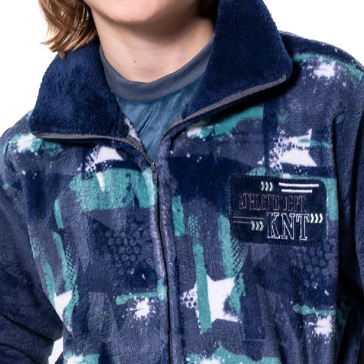 Bata infantil niño KinaNit 8165 LargaModelo largo por las rodillas, con estampado en el pecho, cuello tapeta y bordado en el pecho.Anudado en la cintura, con cremallera y bolsillos en los laterales.Presentación: Caja individualColor: ÚnicoTallas: 8, 10, 12, 14 y 16Composición: