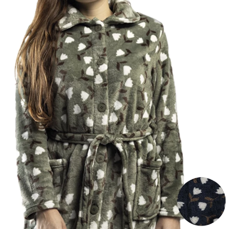 Bata mujer Lin 1034 Corta CoralinaModelo corto por arriba de las rodillas, cuello tapeta y relieve.La bata esta anudada a la cintura, con botones y bolsillos en los laterales.Presentación: Caja individualColor: VerdeTallas: S, M, L, XL, XXL, 3XL, 4XL y 5XLComposición: 100% poliéster, Coralina