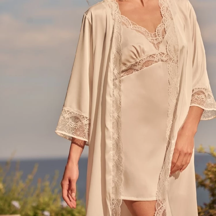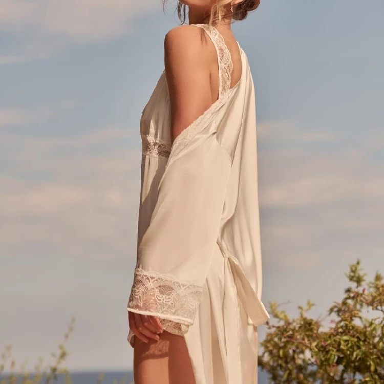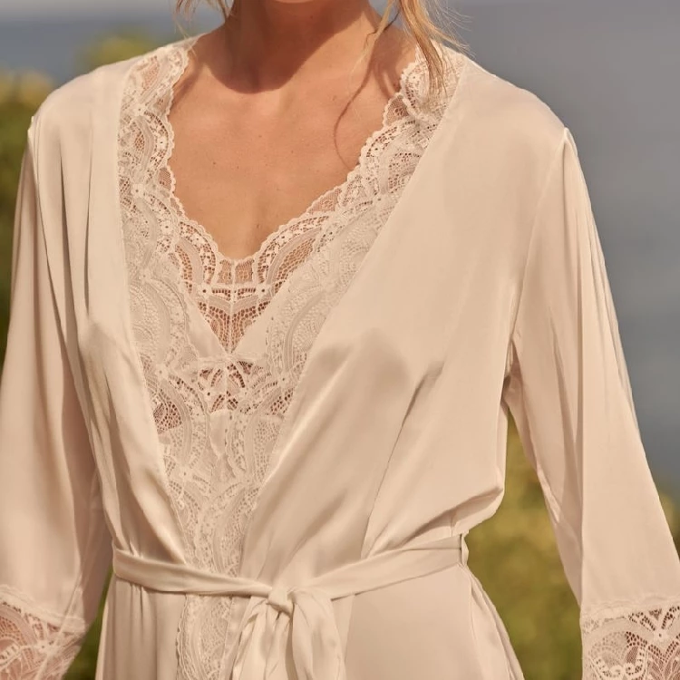 Bata mujer Promise BN1244 NoviaModelo kimono corta satén elástico.Combina con BN1231, B1111 y B1103.Presentación: Pack individualColor: Off-whiteTallas: S, M, L, XL y XXLComposición: