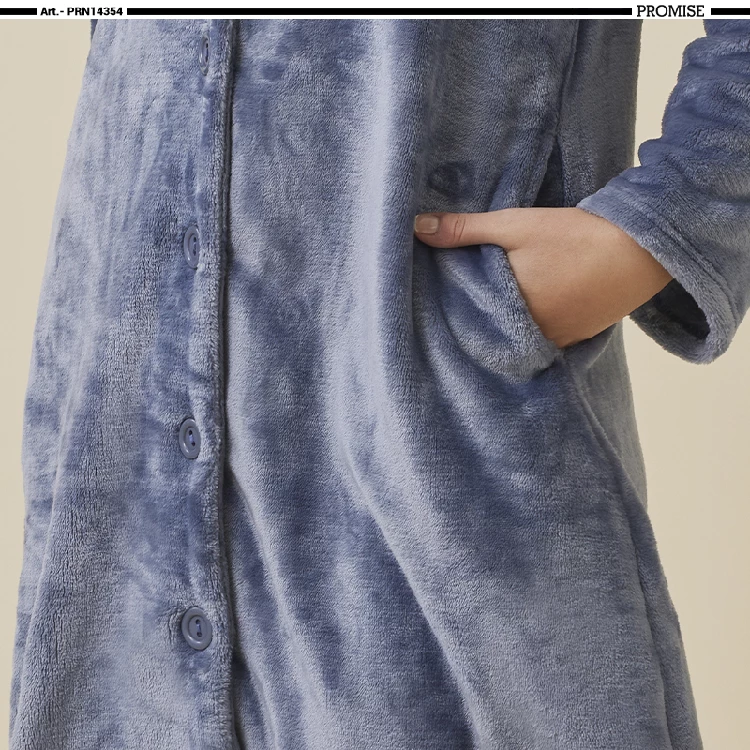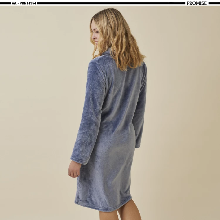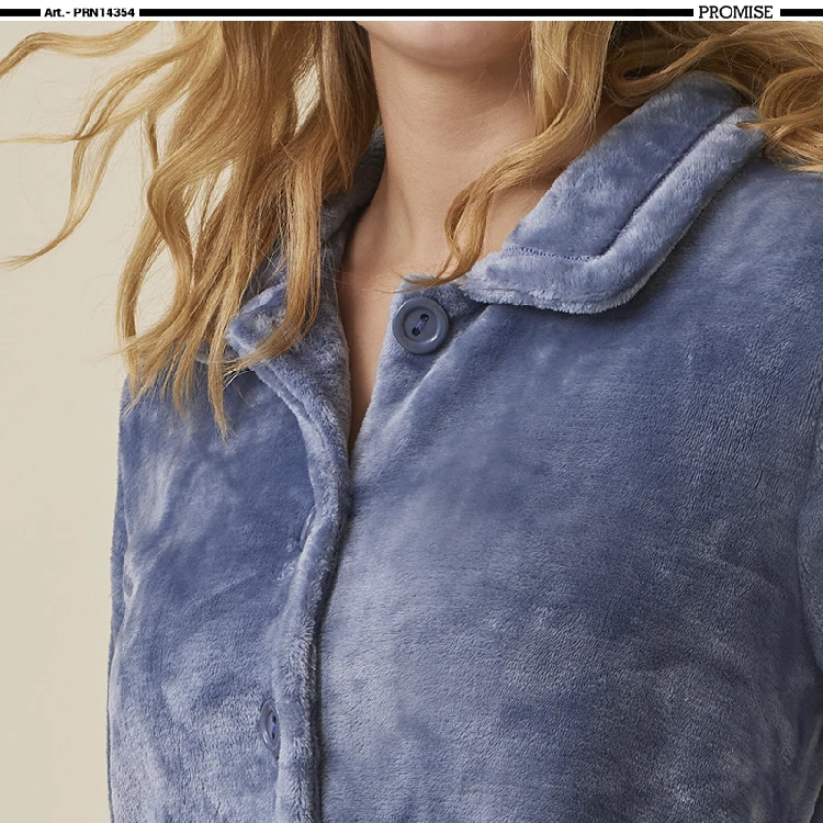 Bata mujer Promise PRON14354 CoralinaBata corta abotonada larga con tejido peludo y bolsillos en los laterales.Presentación: Caja de la marcaColor: MarinoTallas: S, M, L, XL y XXLComposición: poliéster