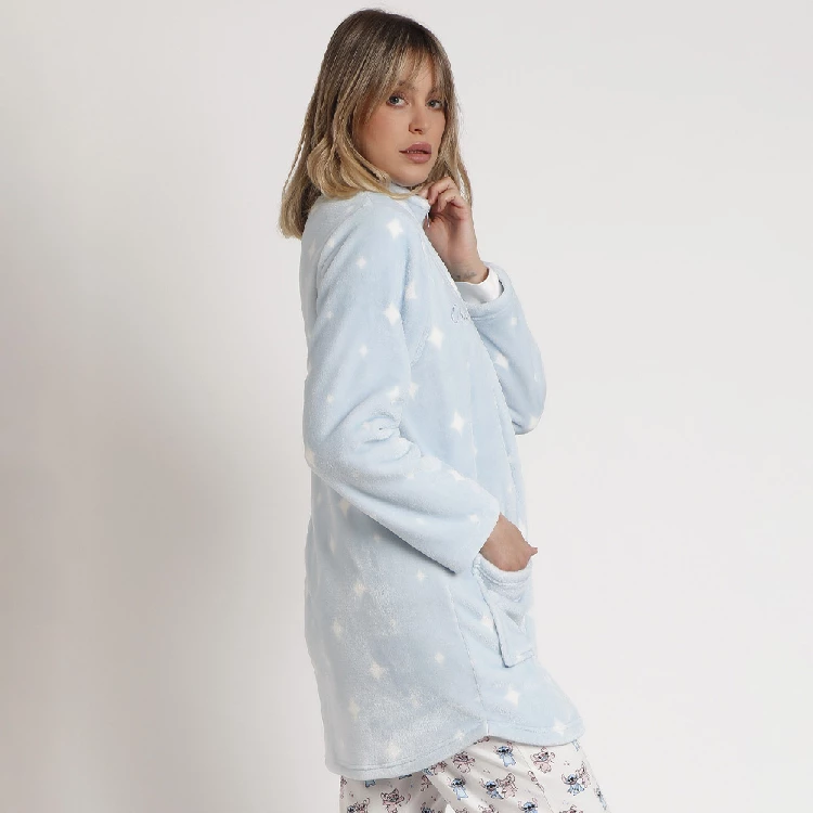 Bata Mujer Ohana 67141 Tejido calentito de CorelDetalles bordadosCremallera central y bolsillos lateralesColor: Azul Tallas: S, M, L, XL y XXL Composición: 100% poliéster