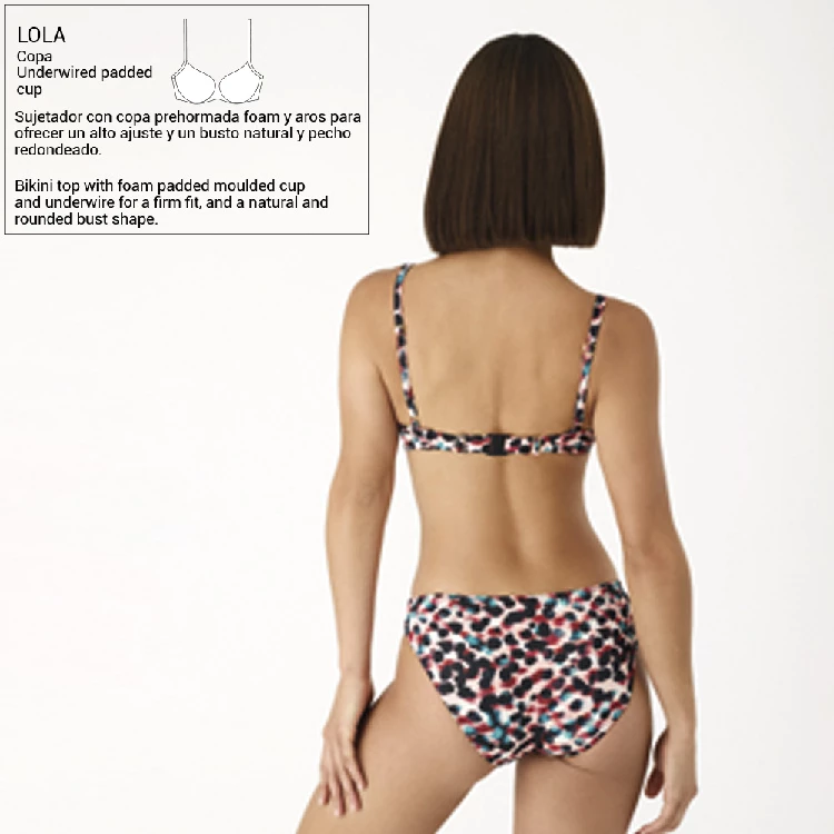 Bikini mujer Promise S10480 Copa CSujetador en copa B, con copa prehormada foam y aros para ofrecer un alto ajuste y un busto natural y pecho redondeado.Braga bikini normal, estampada completa.Presentación: Caja individualColor: MulticolorTallas: 85, 90, 95, 100 y 105Composición: