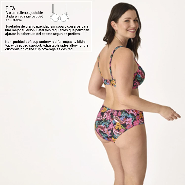 Bikini mujer Promise S11160 Copa C AroSujetador en copa C, de gran capacidad sin copa y con aros para una mejor sujeción. Cuenta con los laterales regulables que permiten ajustar la cobertura del escote según se prefiera.Braga midi con refuerzo y estampado completo.Presentación: Caja individualColor: MulticolorTallas: 85, 90, 95, 100, 105 y 110Composición: