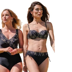 Bikini mujer Rasdemar 26034 Copa C BandeauSujetador en copa C, con aro y con relleno, cuenta con tirantes regulables y desmontables.Braga midi estampada con decoración en los laterales.Presentación: Pack individualColor: ÚnicoTallas: 90, 95, 100 y 105Composición: 80% Poliamida y 20% elastano