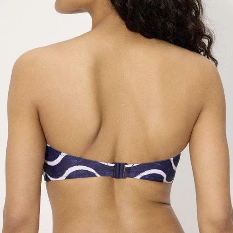 Bikini mujer Ysabel Mora 83221_1 Copa C BandeauSujetador en copa C, bandeau con aro y relleno extraíble, tirante regulables, desmontables. Modelo multiposiciones.Braga bikini estampada completaPresentación: Caja individualColor: ÚnicoTallas: 90, 95, 100 y 105Composición: 82% Poliamida y 18% elastano