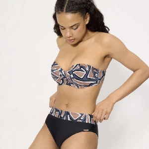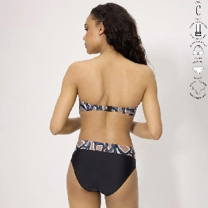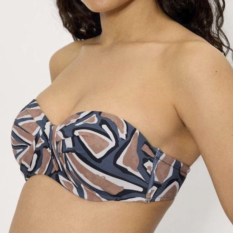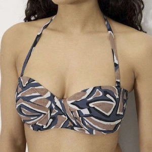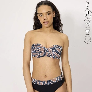 Bikini mujer Ysabel Mora 83300_1 Copa C BandeauSujetador en copa C, con aro y con relleno, tirantes desmontables y anudado al cuello. Estampado coordinado.Modelo midi estampado coordinado y multiposiciones.Presentación: Caja individualColor: ÚnicoTallas: 90, 95, 100 y 105Composición: 82% Poliamida y 18% elastano