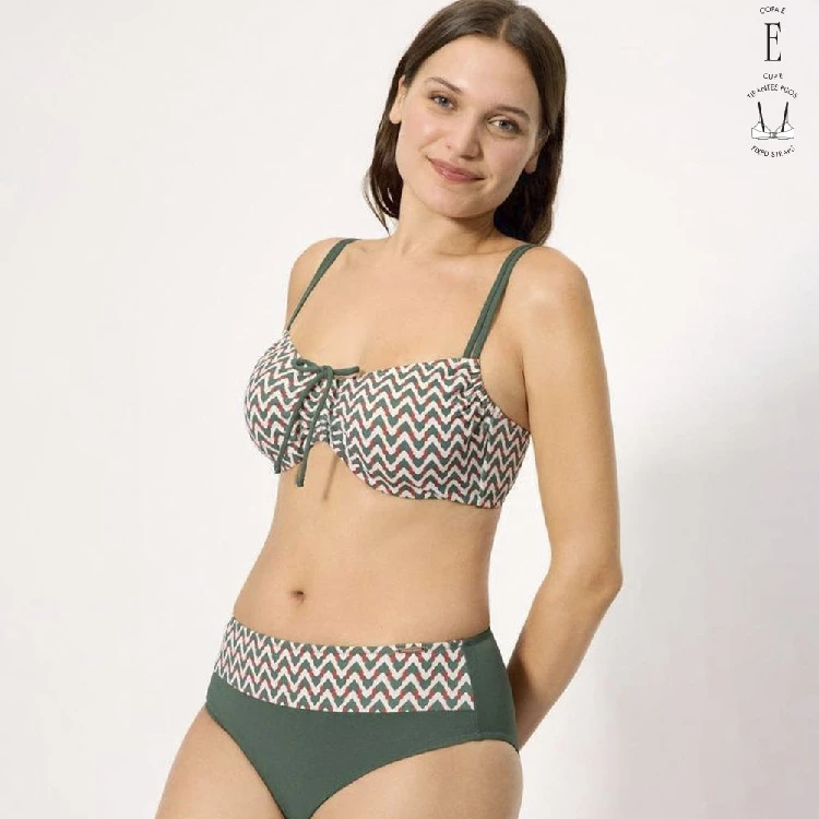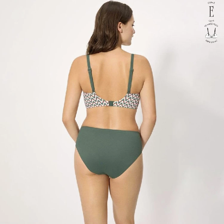 Bikini mujer Ysabel Mora 83332_1 Copa E ReductorSujetador en copa E, reductor con aro y sin relleno y compresión en copa y espaldilla. Estampado completo y con tirantes fijos.Braga maxi reductora con compresión en el abdomen y estampada.Presentación: Caja individualColor: Ikat GreenTallas: 90, 95, 100, 105 y 110Composición: 90% Poliamida y 10% elastano