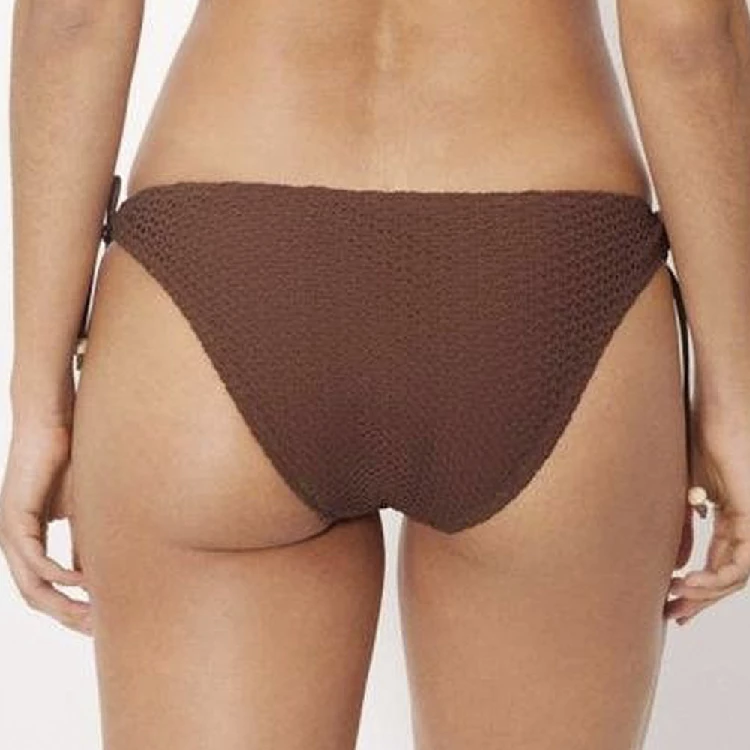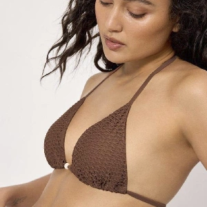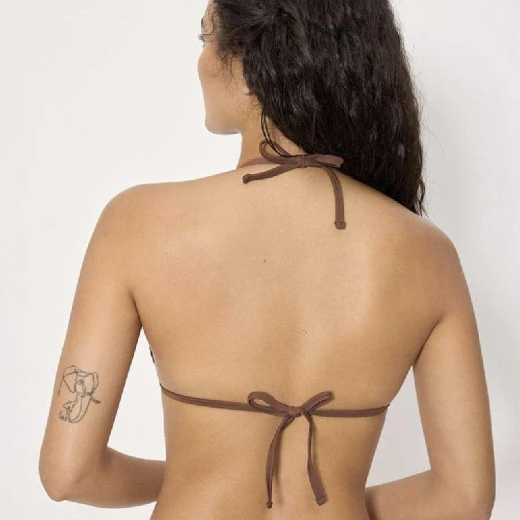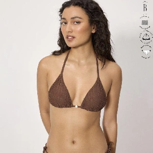 Bikini mujer Ysabel Mora 83353_1 Copa B TrianguloSujetador en copa B, triangulo sin aro y con relleno extraíble, tejido calado y anudado al cuello y espalda.Braga mini, con tejido calado y anudada.Presentación: Caja individualColor: BrownTallas: 85, 90, 95 y 100Composición: 84% Poliéster y 16% elastano