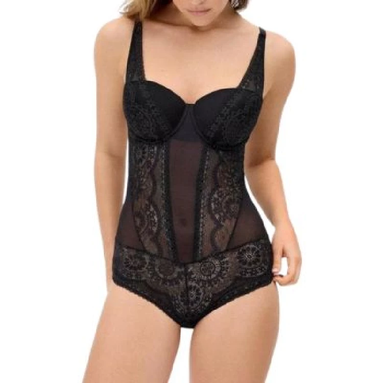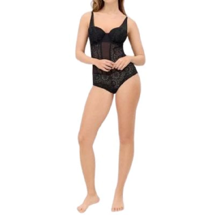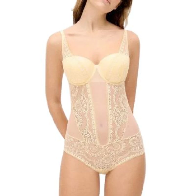 Body mujer Ysabel Mora 10808 Copa BModelo en copa B con aro y con relleno.Encaje en todo el body.Ajustable con cierre de corchetes en la espalda y la parte íntima.Presentación: Caja individualColor: Light Golden y NegroTallas: 85, 90, 95 y 100Composición: 90% Poliamida y 10% elastano