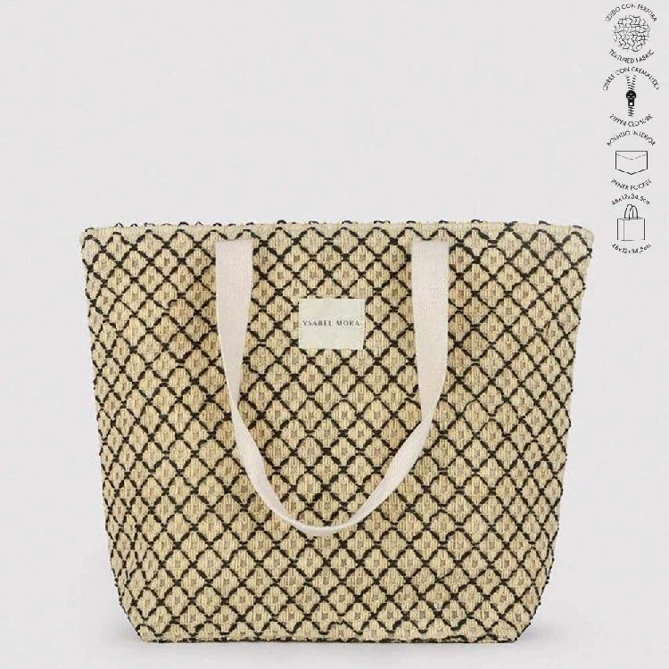 Bolso mujer Ysabel Mora 86295Modelo con tejido con textura, cierre con cremallera y bolsillo interior.Presentación: Caja individualColor: ÚnicoTallas: Único (46x12x34.5 cm)Composición: 100% Papel y el Forro: 100% Poliéster