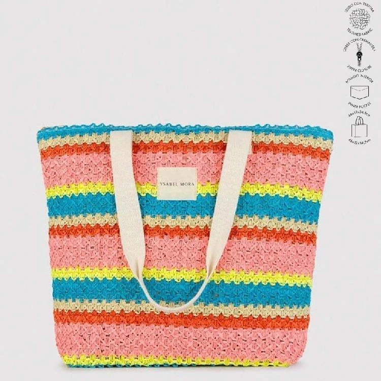 Bolso mujer Ysabel Mora 86297Modelo con tejido con textura, cierre con cremallera y bolsillo interior.Presentación: Caja individualColor: ÚnicoTallas: Único (46x12x34.5 cm)Composición: 100% Papel y el Forro: 100% Poliéster