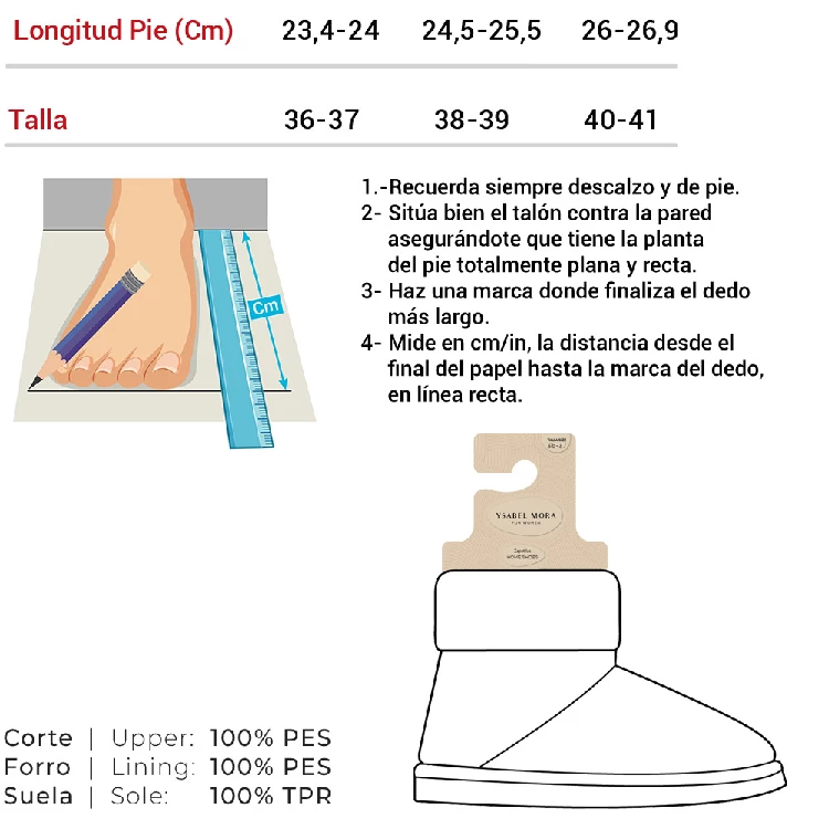Botas mujer Ysabel Mora 14168Modelo de casa para mujer con contraste de colores y detalles de pelo.Presentación: Pack individualColor: Unico Tallas: 36-37, 38-39 y 40-41Composición: Corte: 100% Poliéster, Forro: 100% Poliéster, Suela: 100% TPR