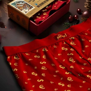 Bóxer hombre Admas 48683E NavidadModelo con goma vista y estampado completo con dibujos de euros y dólares.Presentación: Packaging personalizado de la lotería de navidadColor: RojoTallas: S, M, L y XLComposición: 95% Algodón y 5% elastano
