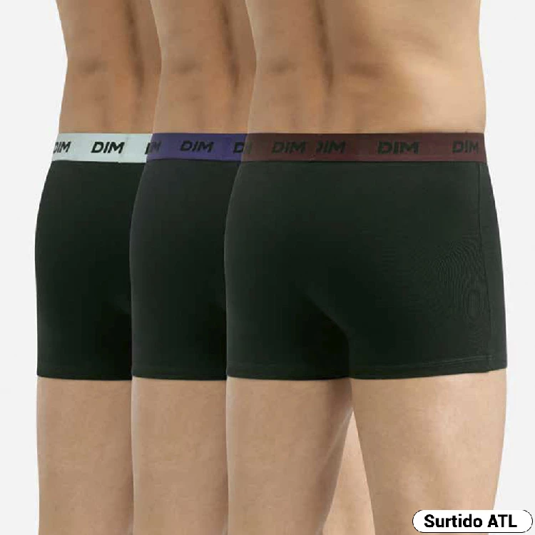 Bóxer hombre DIM AD1005D TripackModelo con incomparable resistencia y suavidad del algodón elástico.Cintura en Jacquard contrastada que dinamiza tu silueta.Bolsillo delantero forrado y las costuras de 4 hilos para una óptima sujeción.Desvela tu lado fashion con total sobriedad con este modelo de bóxer para hombre Mix & Colors.Fabricado sobre una base lisa de algodón elástico negro, tu pack de ropa interior masculina tiene una cintura y costurasPresentación: Packaging de la marca, con 3 unidadesColor: BCO (citron, magenta y marine), ATL (Gris, violeta y granate), ATJ (Amarillo, azul y gris) y ATK (Naranja, verde y ocre)Tallas: S, M, L y XLComposición: 96% algodón y 4% elastanoEmbalaje: 100% reciclado