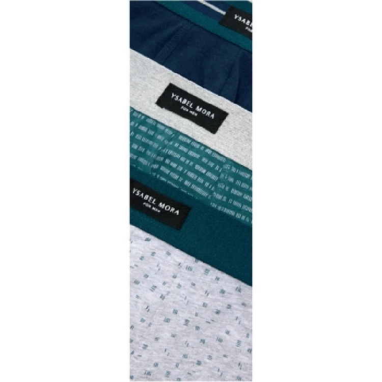 Bóxer hombre Ysabel Mora 20449 Pack de 3Modelo estampado completo con goma vista.Hecho con algodón naturalPresentación: Bolsa de 3 unidadesColor: SurtidoTallas: S, M, L, XL y XXLComposición: 95% Algodón y 5% elastano