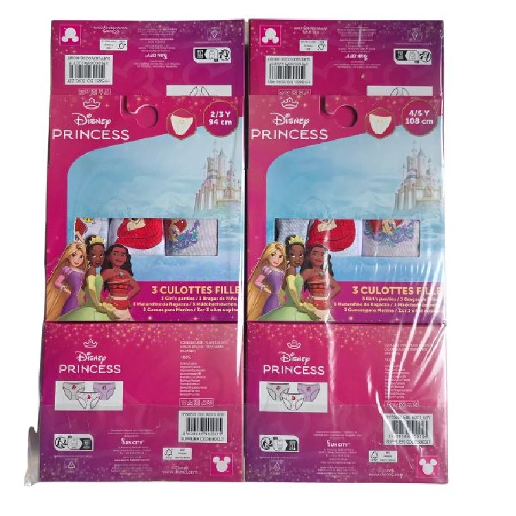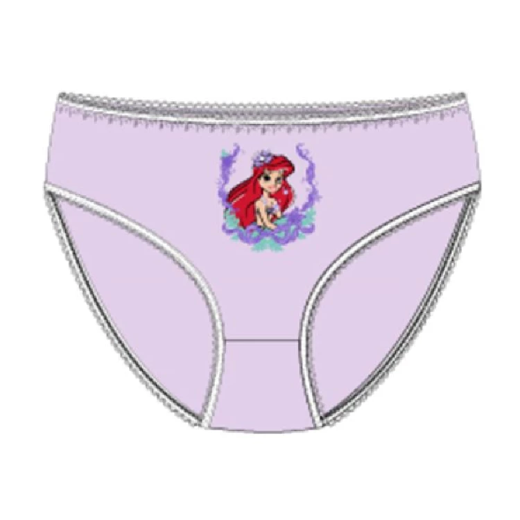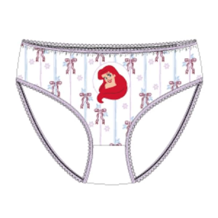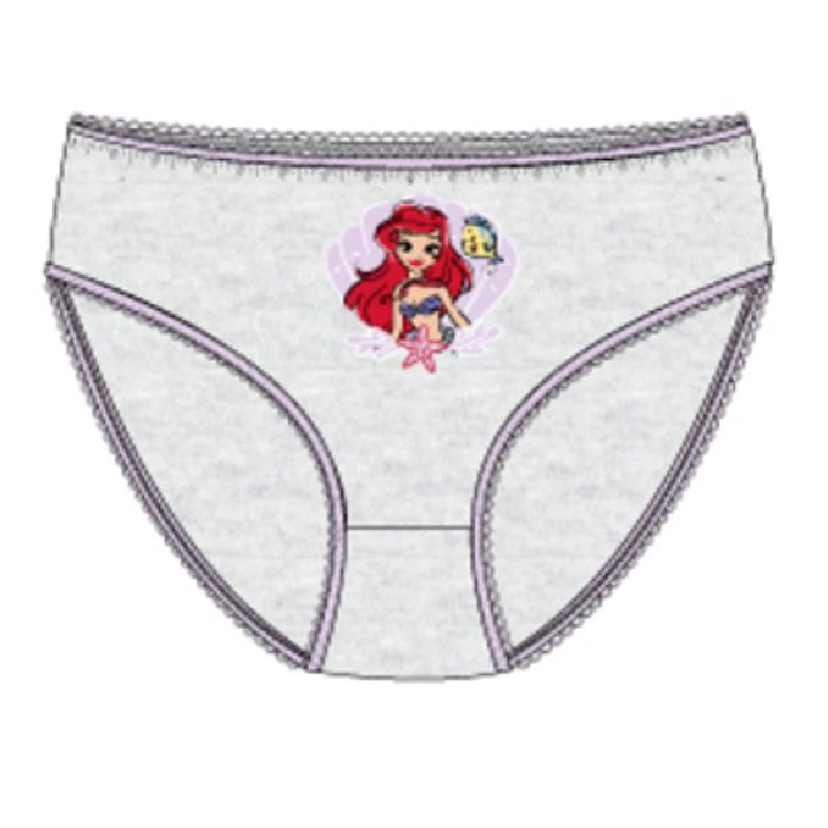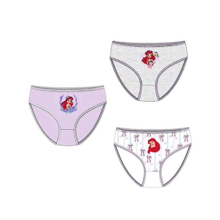 Braga infantil niña Ariel Pack de 18Modelo estampado de Ariel, cada 1 de los 3 modelos tiene un estampado diferente.Presentación: Pack de 6 tripacksColor: SurtidoTallas: 2.3(94 cm), 4.5(108 cm), y 6.8(126 cm)Composición: 100% Algodón