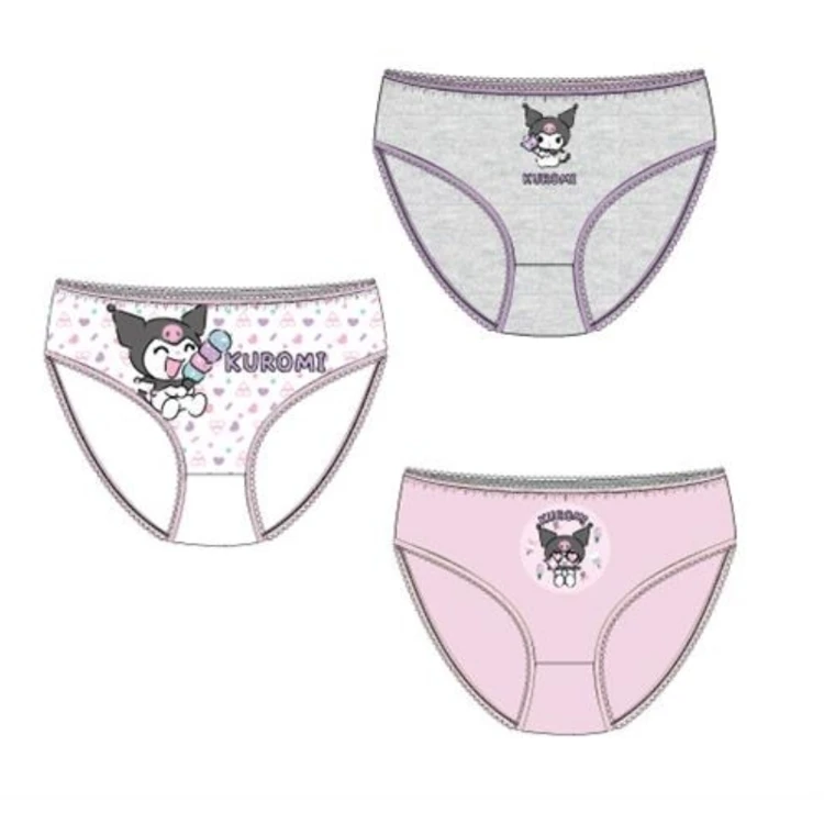 Braga infantil niña Kuromi EZ80070 6 Pack de 3Modelo con 3 estampados diferentes.licencia oficial KuromiPresentación: Bolsa de 6 tripacks, 2 por tallaColor: SurtidoTallas: Surtido (2/3, 4/5 y 6/8 años), y 2.3Composición: Algodón