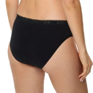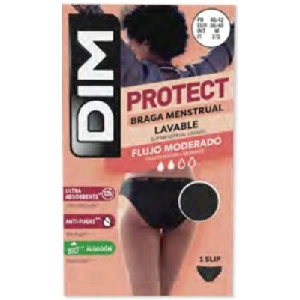 Braga mujer DIM AD00DPI Menstrual Flujo ModeradoModelo bikini menstrual, hecho de algodón. Diseñado para flujo moderado.Es una braga innovadora que proporciona la protección necesaria hasta 12h, por el día y por la noche.Se puede usar como método exclusivo o como complemento a tampones o copas.Diseñado a prueba de fugas, neutraliza el olor. Discreción total.Alternativa segura, sostenible y cómoda, que respeta tu intimidad.Colección DIM ProtectPresentación: Caja individualColor: NegroTallas: S, M y LComposición: 95% Algodón y 5% ElastanoZona de protección: 100% Algodón