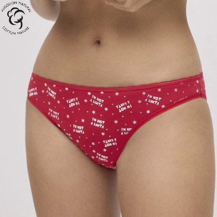 Braga mujer Ysabel Mora 19489 navidad MiniModelo mini de algodón natural con estampado navideñoPresentación: Caja individual con decoración navideñaColor: ÚnicoTallas: S, M, L y XLComposición: 95% Algodón y 5% Elastano