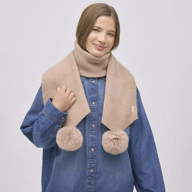 Bufanda mujer Ysabel Mora 70691Modelo con pompón de tonalidades neutras.Presentación: Pack con colgadorColor: Camel y NegroTallas: ÚnicaComposición: 100% Poliéster