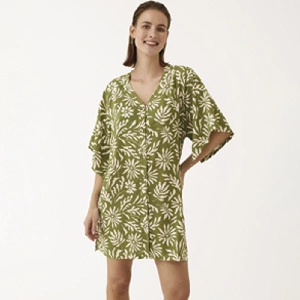 Caftán mujer Promise S10717Modelo por encima de las rodillas, manga corta, abotonado, hecho de viscosa y estampado completo.Presentación: Caja individualColor: CaquiTallas: S, M, L, XL y XXLComposición: