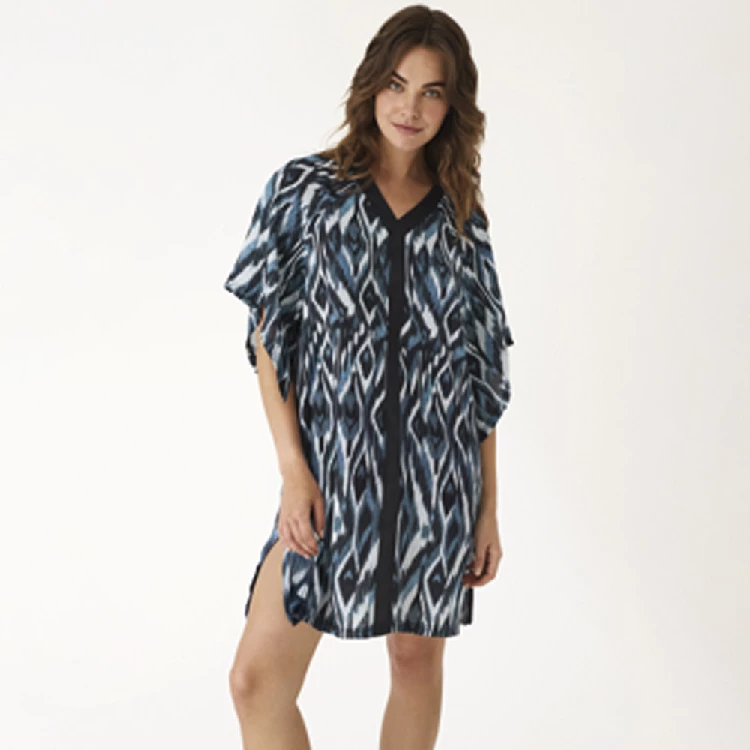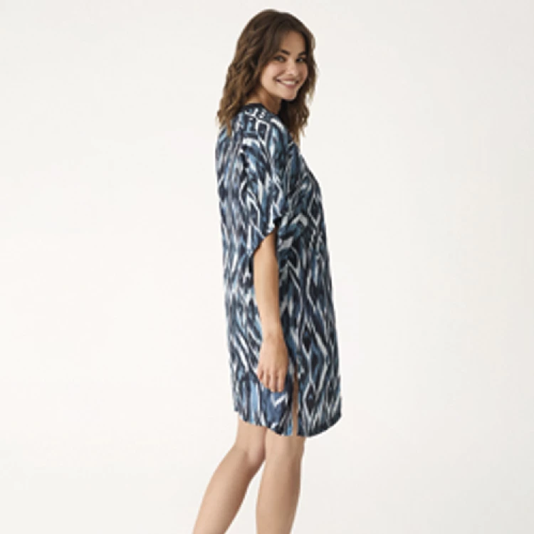 Caftán mujer Promise S11037Modelo crepé, por encima de las rodillas, manga corta y estampado completo.Presentación: Caja individualColor: AzulTallas: S, M, L, XL y XXLComposición: