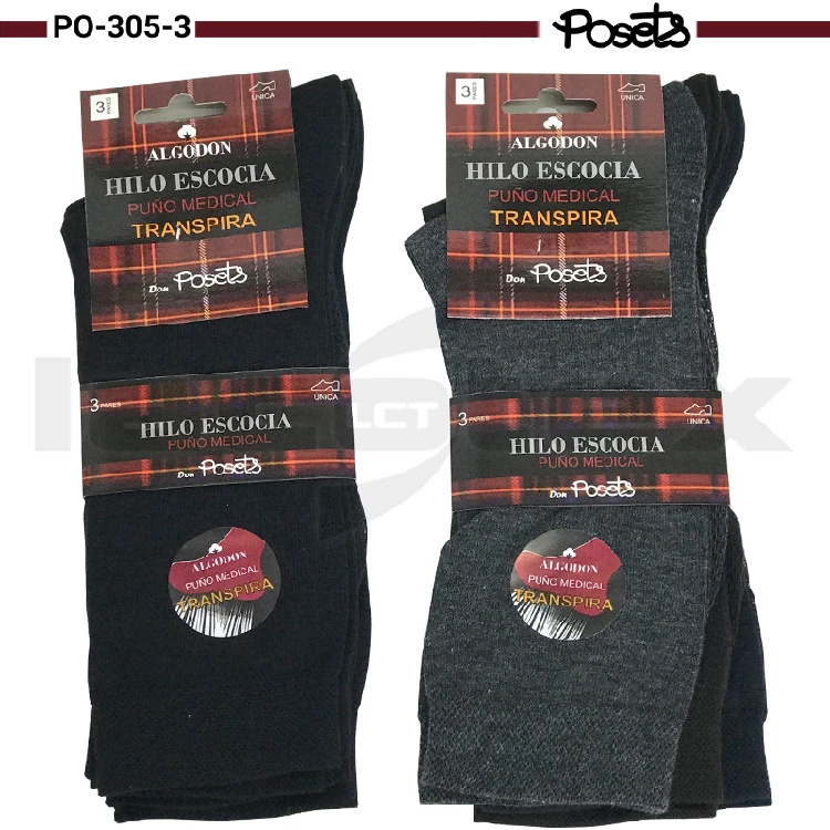Calcetín hilo de escocia hombre Posets PO305Modelo con puño medical.Calcetín de hilo de escocia, algodón mercerizado y peinado.Presentación: en pack de tres y en bolsa de docena una de cada color.Colores: Negro y surtidoComposición: 95% algodón peinado 5% poliéster.