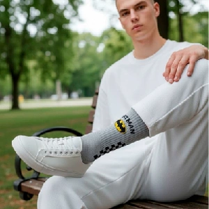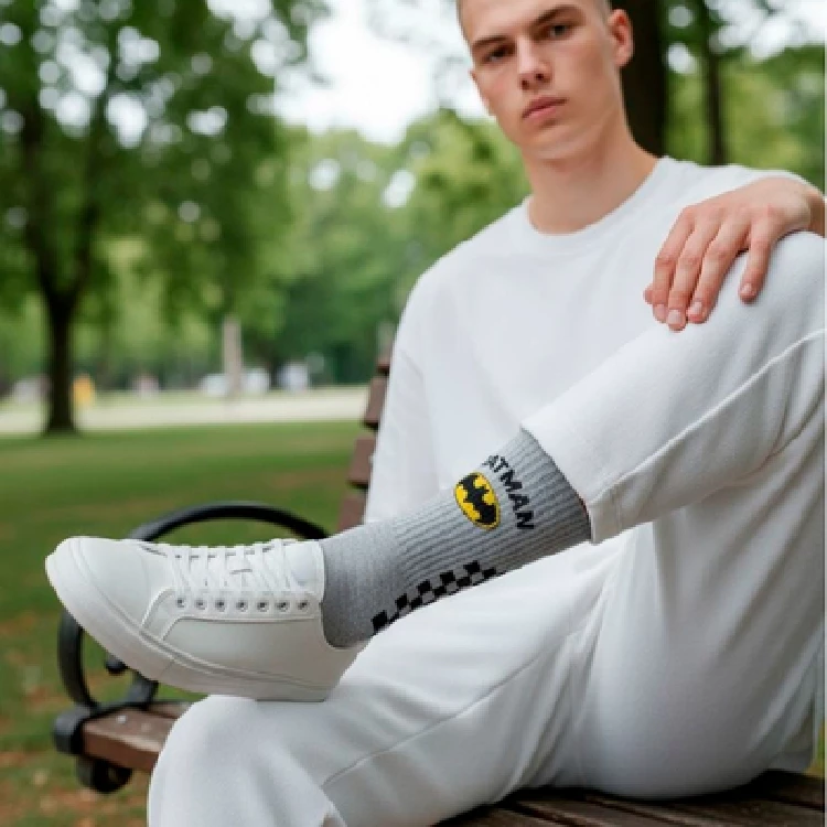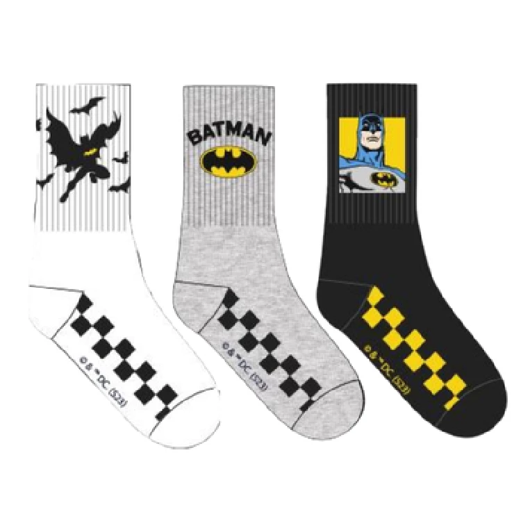 Calcetín hombre Batman HW5715 Pack de 6Modelo largo con estampado de batman en la caña y el pie hecho con tejido Jacquard.Presentación: Pack de 3 con colgadorColor: SurtidoTallas: ÚnicaComposición: 85% Algodón, 12% poliamida y 3% elastano