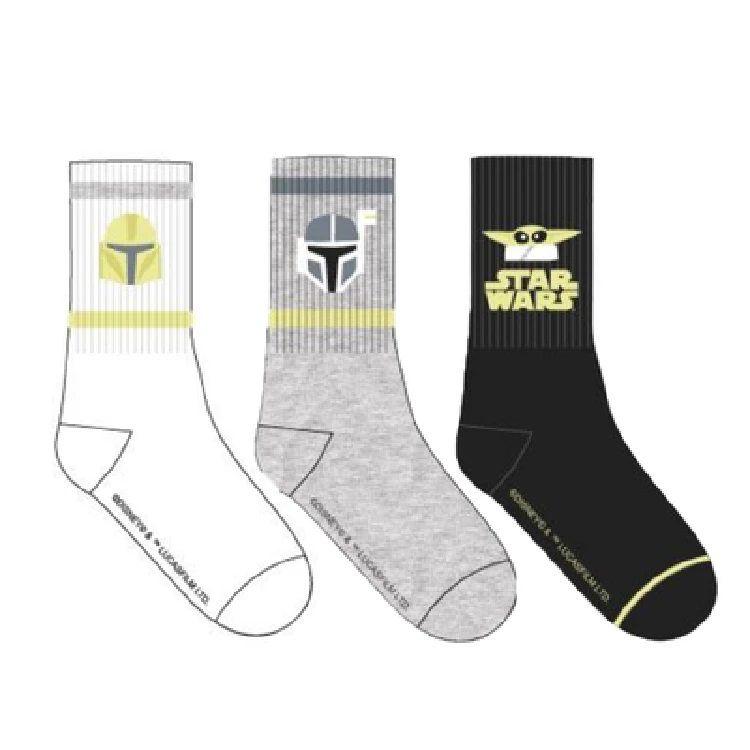 Calcetín hombre Mandalorian HW5717 Pack de 6Modelo largo con estampado de Mandalorian y hecho con tejido Jacquard.Presentación: Pack de 3 con colgadorColor: SurtidoTallas: ÚnicaComposición: 85% Algodón, 12% poliamida y 3% elastano