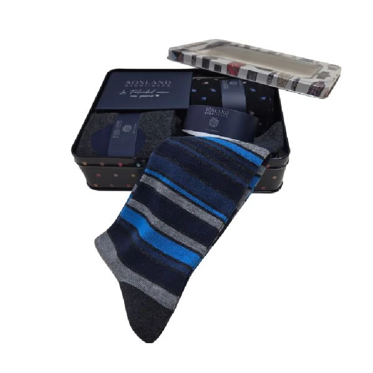 Calcetín hombre Soxland 0313260 Pack de 3La caja continente 3 calcetines largos con estampado y hechos de algodón cálido.Cuenta con puño antipresión y esta remallado a mano.De la colección Gift Collection.Presentación: Caja metálica con ventana, con 3 pares de calcetines con diferentes estampadosColor: Surtido 01Tallas: 40/45Composición: 72% Algodón, 26% Poliéster y 2% elastano