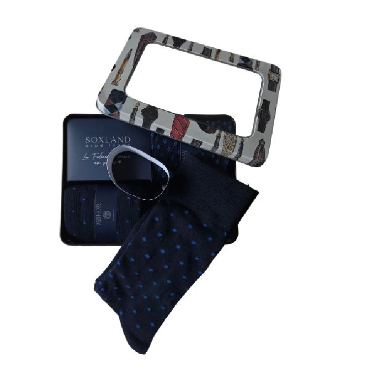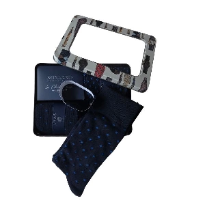 Calcetín hombre Soxland 0314260 Pack de 3La caja continente 3 calcetines largos con estampado y hechos de algodón cálido.Cuenta con puño antipresión y esta remallado a mano.De la colección Gift Collection.Presentación: Caja metálica con ventana, con 3 pares de calcetines con diferentes estampadosColor: Surtido 01 (Estampado marino sobre calcetines azules) y Surtido 02 (Estampado sobre calceetines de tonalidades grises y negro)Tallas: 40/45Composición: 72% Algodón, 26% Poliéster y 2% elastano