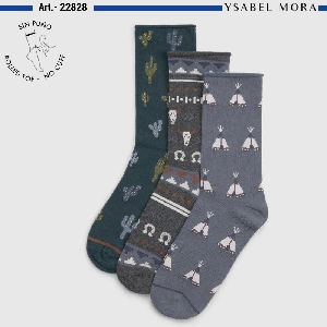 Calcetín hombre Ysabel Mora 22828 Caja de 12 unidadesModelo estampado hombre sin puño tejidos en algodón. Motivos indios sobre bases lisas.Presentación: Caja de 12 unidadesColores: surtidoTallas: 41-46Composición: 73% Algodón, 25% Poliéster, 2% Elastano
