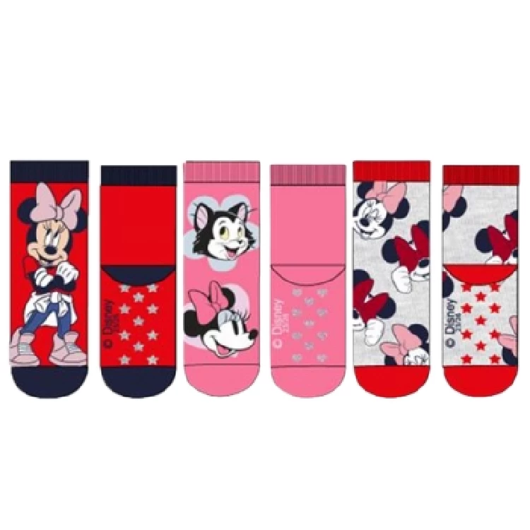 Calcetín infantil Minnie HY06062 Pack de 12 AntideslizanteModelo antideslizante estampado completo de Minnie.Presentación: Pack de 12 unidades, con 3 estampados diferentesColor: Surtido (Cuenta con 3 estampados diferentes)Tallas: Surtido (3 de la talla 23/26, 6 de la 27/30 y 3 de la 31/34)Composición: 70% Algodón, 18% Poliéster, 10% Poliamida y 2% elastano