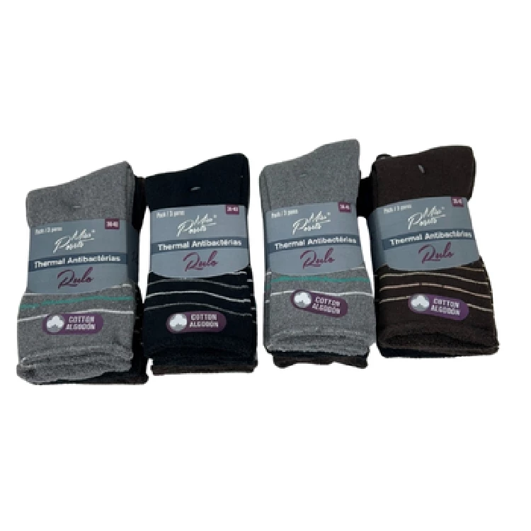 Calcetín mujer Posets 2513 4 TripacksModelo largo termal, con rulo, antibactérias y estampado a rayas.Presentación: Bolsa de 4 tripacks surtidosColor: SurtidoTallas: 36/40Composición: 80% Algodón, 18% poliéster y 2% elastanoCUIDADOS:Lavar a 30ºNo utilizar blanqueantesNo utilizar secadoraNo plancharNo lavar en seco