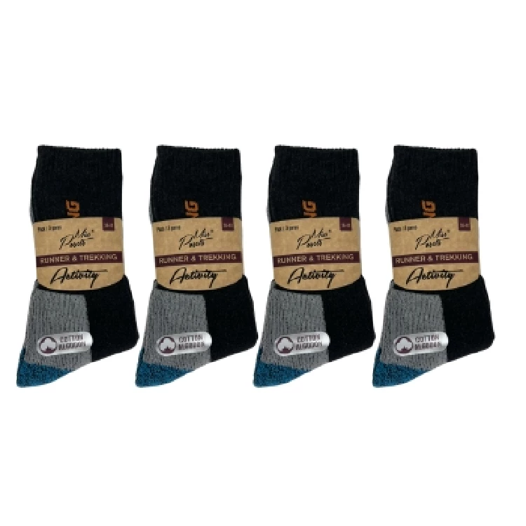 Calcetín mujer Posets 3214 Pack de 12 TrekkingModelo largo, perfecto para correr o hacer trekking, hecho de algodón y estampado.Presentación: Bolsa de 12 unidades, 4 packs de 3 unidadesColor: SurtidoTallas: 36/40Composición: 80% Algodón, 18% Poliéster y 2% elastanoCUIDADOS:Lavar a 30ºNo utilizar blanqueantesNo utilizar secadoraNo plancharNo lavar en seco