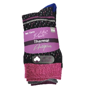 Calcetín mujer Posets PO3611 Pack de 12Modelo termal largo estampado completo.Calcetín con puño antipresión hecho en algodón.Producto fabricado en España.Presentación: Bolsa de 12 unidades, divididas en 4 tripacks surtidosColor: SurtidoTallas: Única (36-40)Composición: 80% Algodón, 18% poliéster y 2% elastanoCUIDADOS:Lavar a 30ºNo utilizar blanqueantesNo utilizar secadoraNo plancharNo lavar en seco
