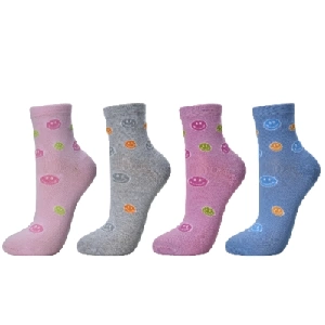 Calcetín mujer Rodfer 5143 Caja de 6 TobilleroModelo tobillero, estampado completo de emoticonos y sin costuras.Presentación: Caja de 6 unidadesColor: SurtidoTallas: ÚnicaComposición: Algodón