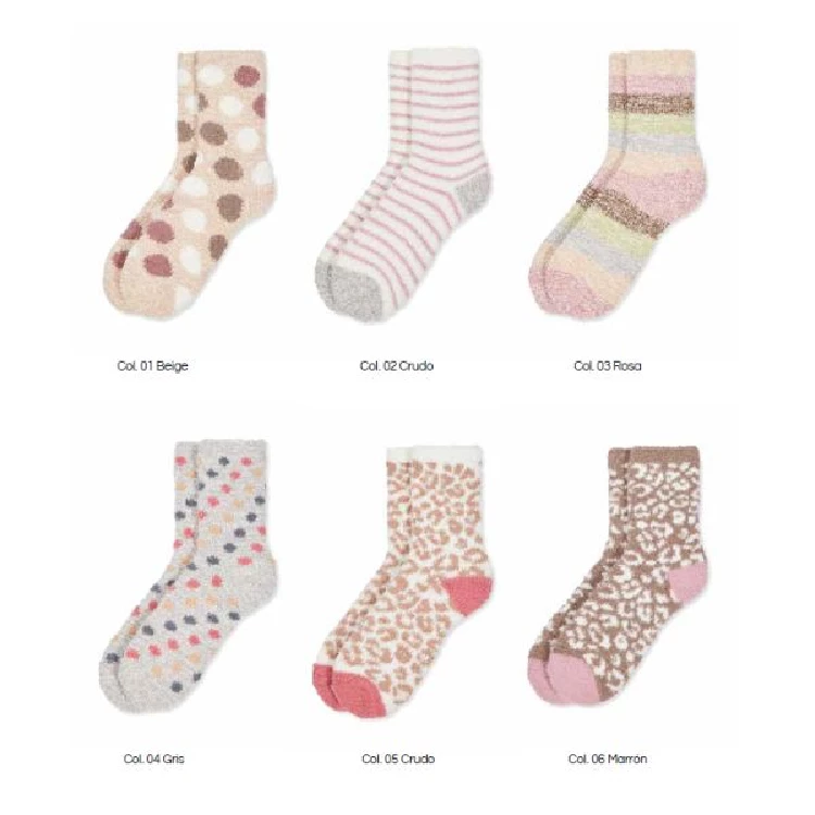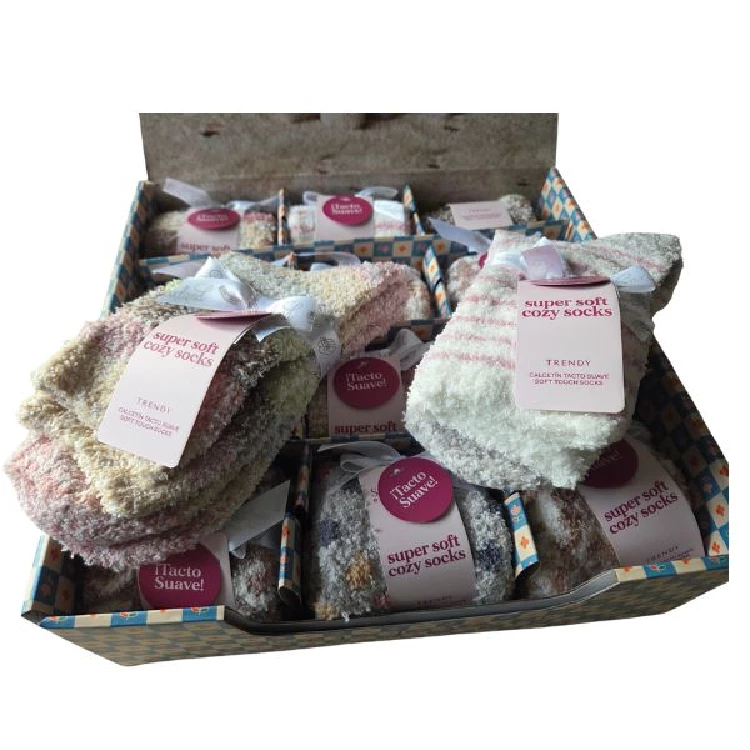 Calcetín mujer Soxland 1680EXPO Pack de 12 SuavecitoPack de calcetines largos suavecitos, estampados con 6 patrones diferentes.Modelo de coralina.Presentación: Expositor de 12 unidades surtidas con un lazo decorativo en cada unoColor: SurtidoTallas: 35/40Composición: 98% Poliéster y 2% elastano