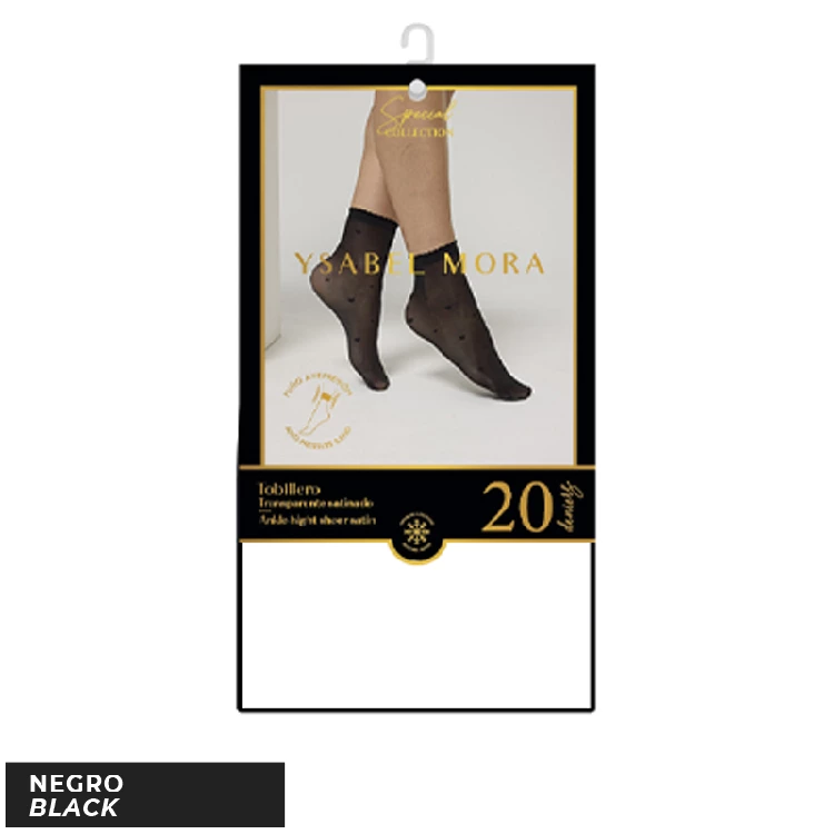 Calcetín mujer Ysabel Mora 18131 Pack de 12 20 Den FantasíaModelo tobillero fantasía 20 DENPresentación: Caja de 12 unidadesColor: NegroTallas: UnicaComposición: 89% Poliamida y 11% Elastano