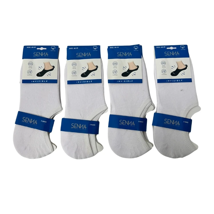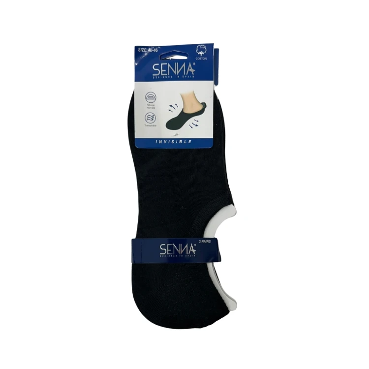 Calcetín unisex Senna SN1102 Pack de 12 PinkyModelo pinky hecho de algodón transpirable y con talón de silicona.Presentacion: Bolsa de 12 unidades individualesColor: Blanco, Arena, Negro y SurtidoTallas: 35-40Composición: 90% Algodón, 5% Poliéster y 5% Elastano