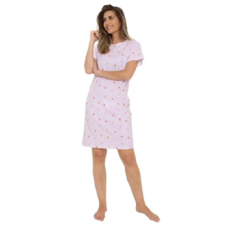 Camisón mujer Lacotex 614047Modelo por encima de las rodillas de manga corta y cuello redondo con estampado completo.Presentación: Pack individualColor: Verde y RosaTallas: S, M, L, XL y XXLComposición: Algodón