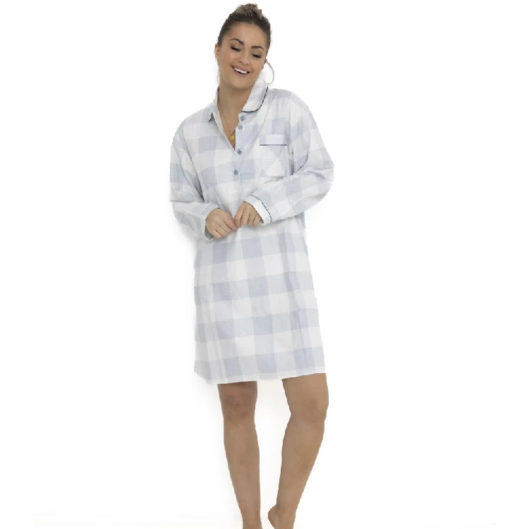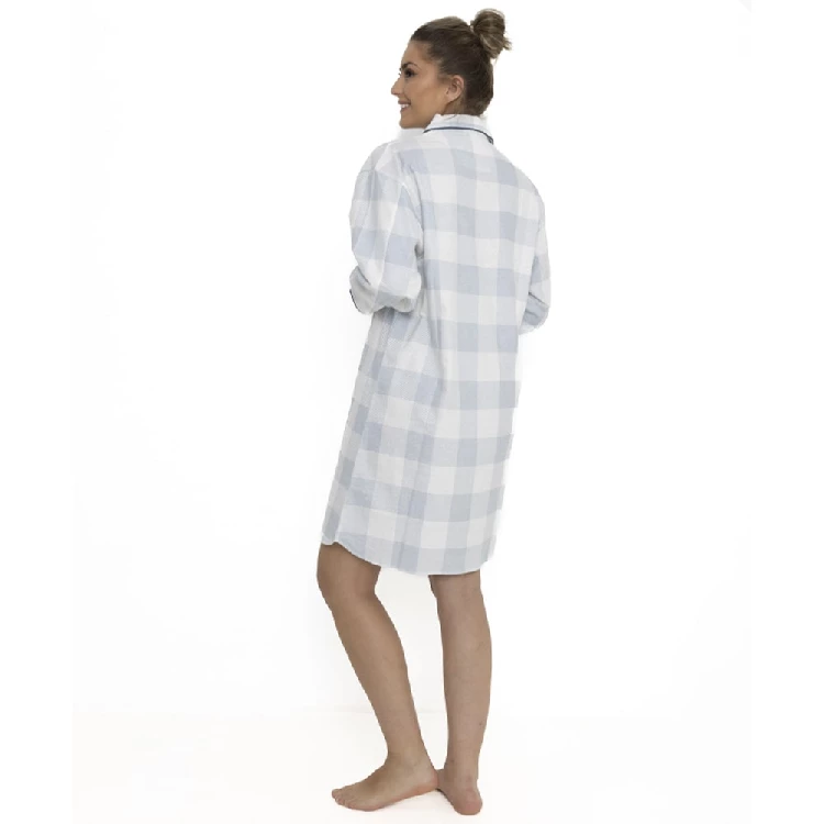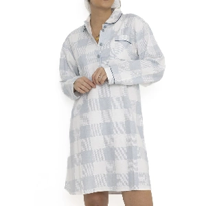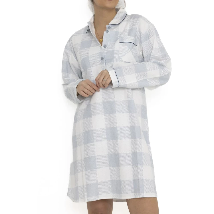 Camisón mujer Lacotex 643975 FranelaModelo por encima de las rodillas, manga larga y cuello tapeta con 3 botones.Estampado completo a cuadros y bolsillo en el pecho.Presentación: Bolsa individualColor: Pardo y GrisTallas: S, M, L, XL y XXLComposición: Algodón