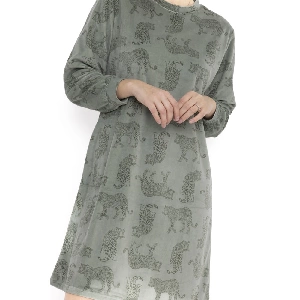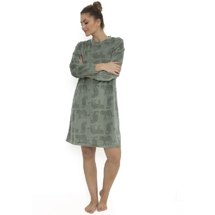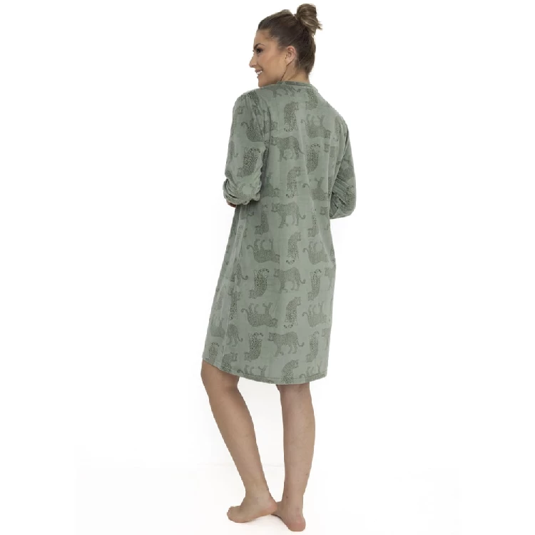 Camisón mujer Lacotex 693973 SpandexModelo por encima de las rodillas, cuello redondo y manga larga con puño.Estampado completo de tigres.Presentación: Bolsa individualColor: Green y MoonbeamTallas: S, M, L, XL y XXLComposición: Spandex