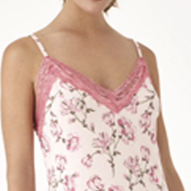 Camisón mujer Promise N21431 ViscosaModelo por encima de las rodillas, con tirante fino, encaje de puntilla y estampado completo.Presentación: Caja individualColor: FrambuesaTallas: S, M, L, XL y XXLComposición: Viscosa